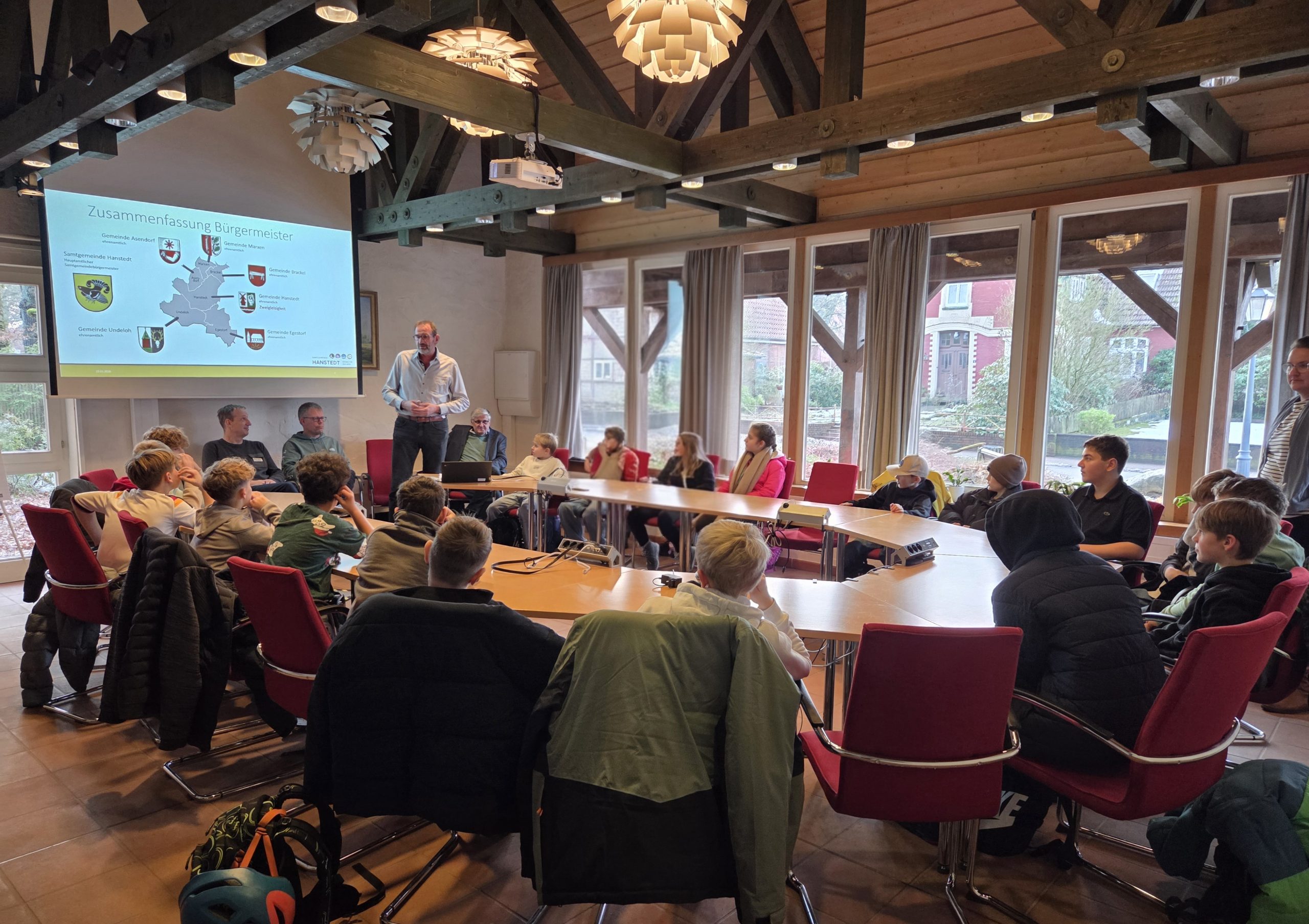 Im Rathaus fand ein spannendes Treffen zwischen den Bürgermeistern der Gemeinden und unseren Lernpartner:innen statt. Die Gelegenheit, den Bürgermeistern direkt Fragen zu stellen, wurde mit Begeisterung genutzt. Es war ein lehrreicher und unterhaltsamer Nachmittag, der allen Beteiligten viel Freude bereitete. Ein Bild von der Veranstaltung zeigt die angeregte Diskussion und das Interesse der Lernpartner:innen.